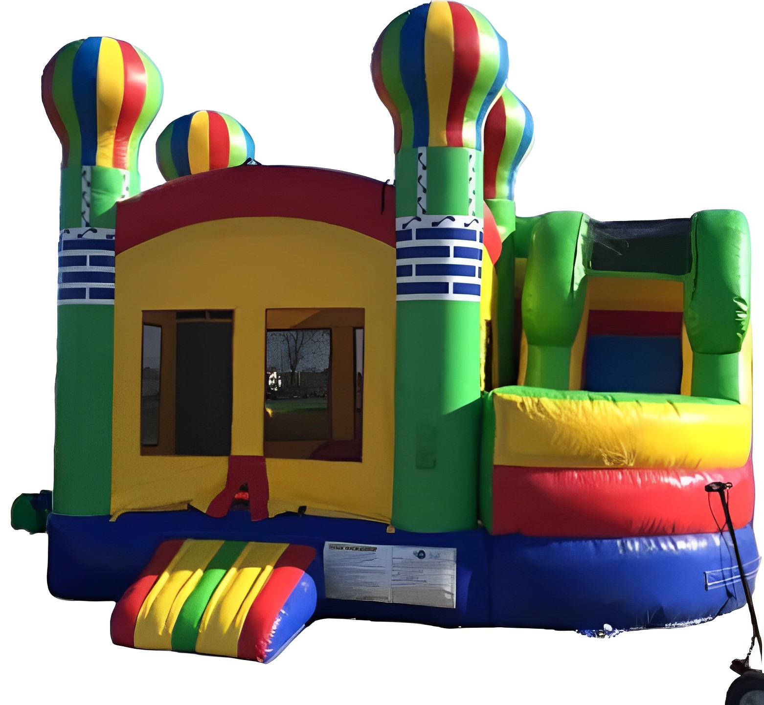 Balloon Bounce Inflatable are the best. They combine a bounce house with a slide to bring the most fun to your party or event. These combo inflatables are great with younger kids to jump and slide into fun.
